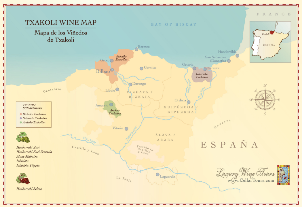 바스크 지방에서 유래된 차콜리 와인은 여러 종류가 있고 고유의 특성을 가지고 있습니다.