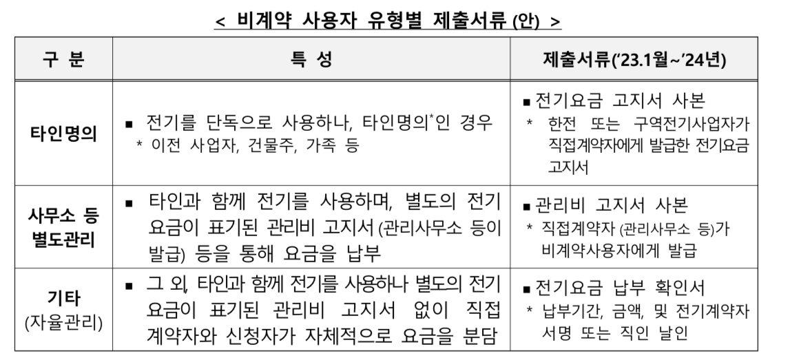 전기 요금 지원 유형