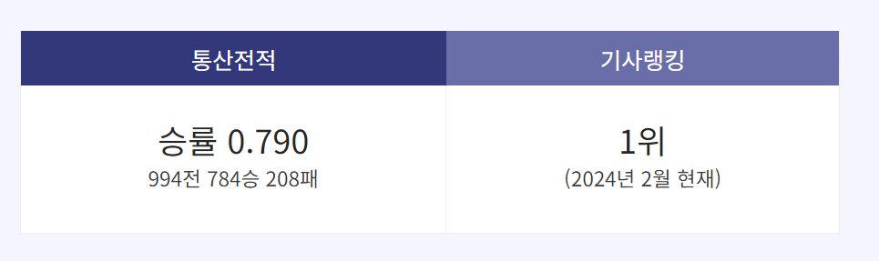 24년 2월 기준 한국기원 랭킹 1위이며, 전 세계 모든 바둑 기사가 포함된 GoRatings 랭 또한 1위로 전 세계 현역 프로바둑 기사 랭킹 1위라고 보시면 됩니다.
